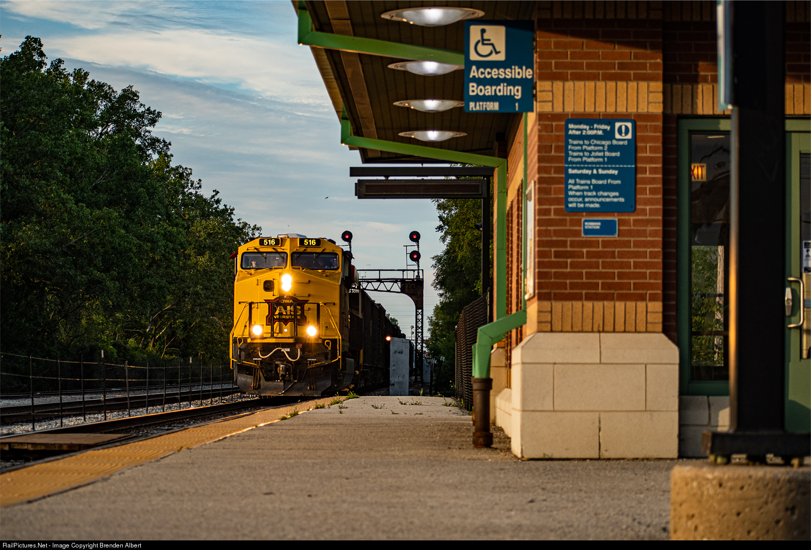 | With the mid-July sunset still a little less than an hour away, Iowa Interstate's nightly Blue Island to Council Bluffs road freight very slowly creeps out of the former Rock Island Burr Oak Yard after getting a block extension all the way to Mokena. Much to the dismay of 139th Street traffic, this long train had tripped the crossing circuit about a little less than a mile down the track and caused quite the backup as it slowly made its way out of the yard. I can only imagine that this is a daily event. |