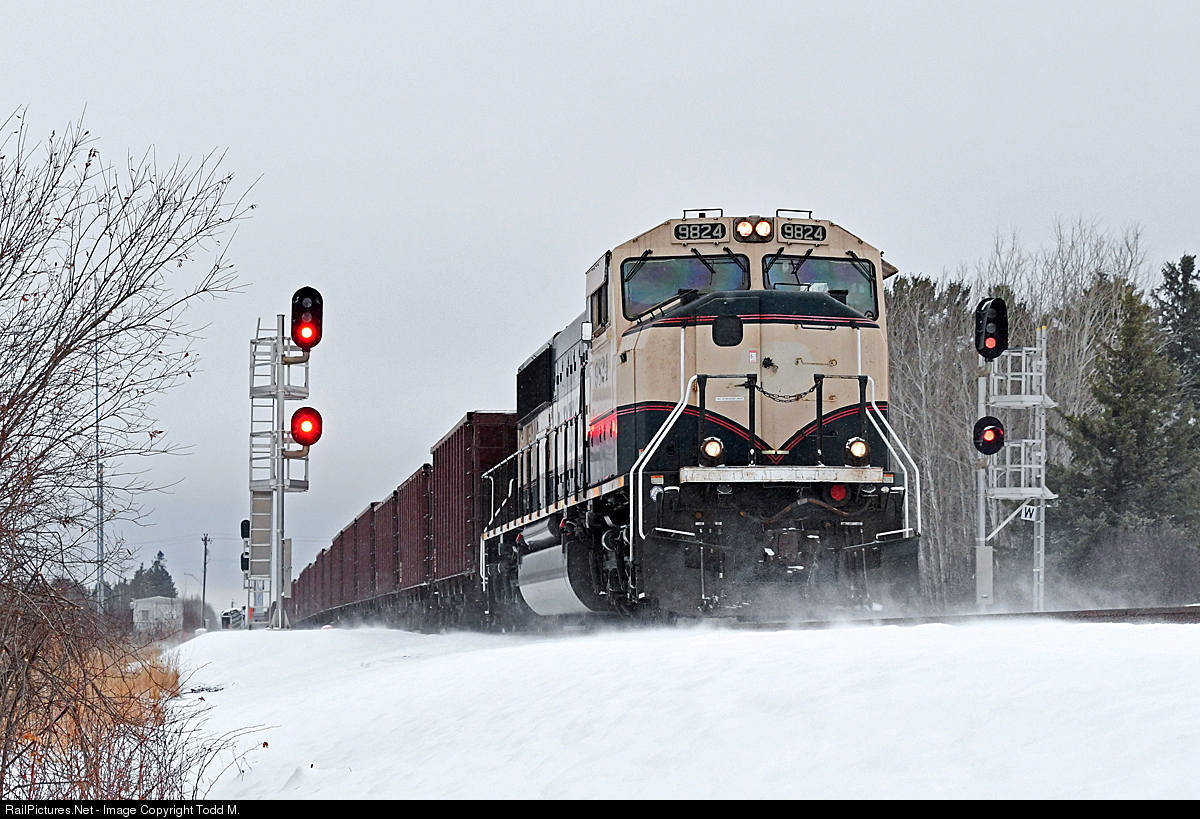 | Pushing on the rear of a 130 taconite train bound for the U.S. Steel Minntac plant was this still looking good somewhat rare Executive MAC. Disclaimer: because it was in DP the ditch lights were "turned on" in processing. |