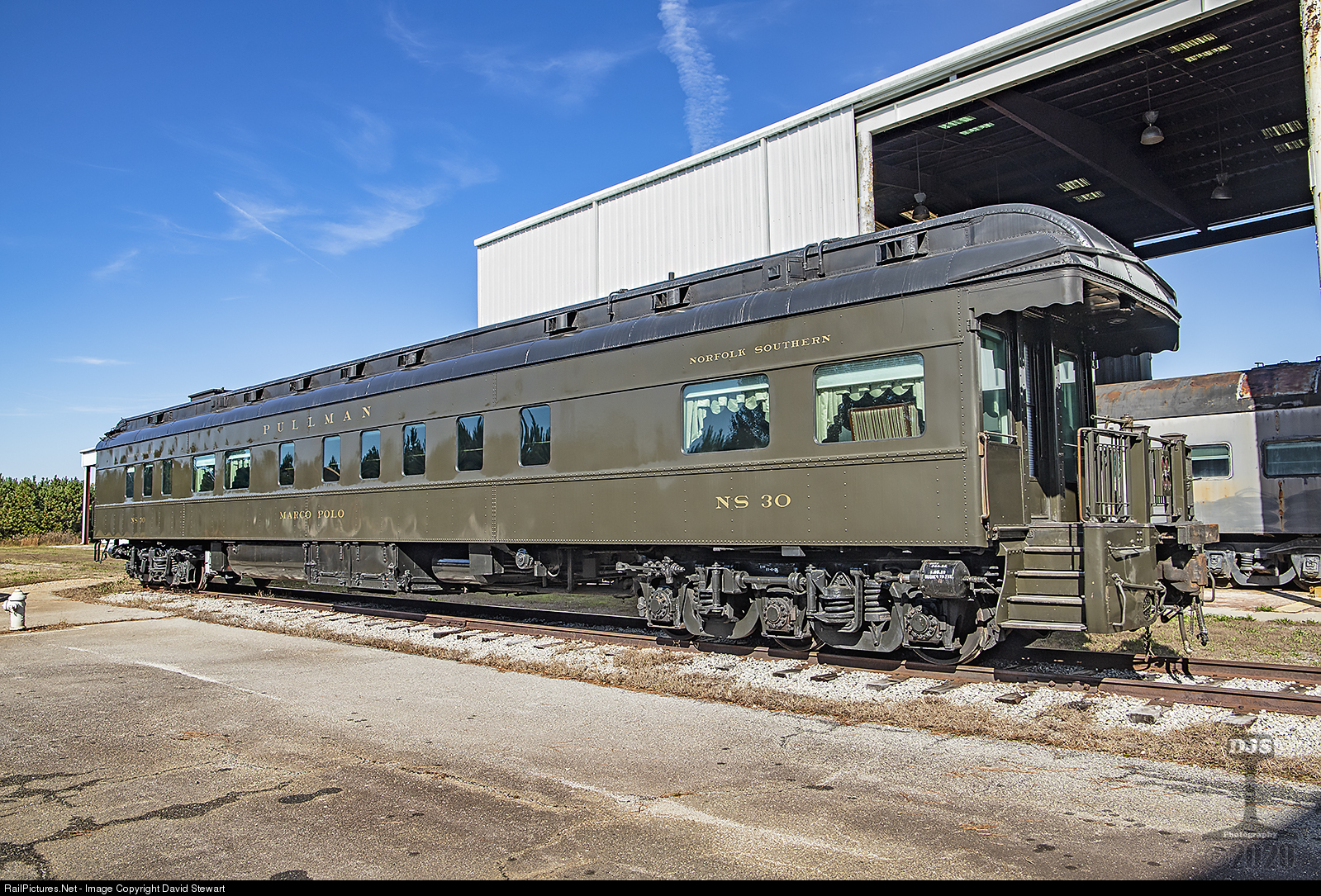 Southeastern Railway Museum welcomes the Marco Polo on November 14, 2020 as a historic donation from Norfolk Southern. NS 30 began it's life in 1927 as part of a six car Explorer Series built by Pullman. Each of the six cars were named for known world travelers. The Marco Polo served as a Presidential car under Herbert Hoover and Franklin D. Roosevelt from it's conception to late 1942. After a extensive wartime refit featuring extra armor, sister car Ferdinand Magellan was completed in late 1942. It took over the roll of Presidential duties which released the Marco Polo for sale in 1944 to Central of Georgia Railway, a Norfolk Southern predecessor where it became their business car "Savannah". From the mid 1970's to 1983 the car was on loan from Southern Railway as a historical display to the Chattanooga "Choo Choo" Hilton, it was then moved to Washington DC's Union Station where it served as "hospitality car" by Norfolk Southern. In 1989 the car regained it's historical name of Marco Polo. As a couple of interesting key sidenotes, in 1988 FDR's son stated the interior was just as he remembered during WWll. Also in the 1930's you could charter the Marco Polo or one of it's five sisters for only $105.00 a day including three car attendants plus railroad charges.