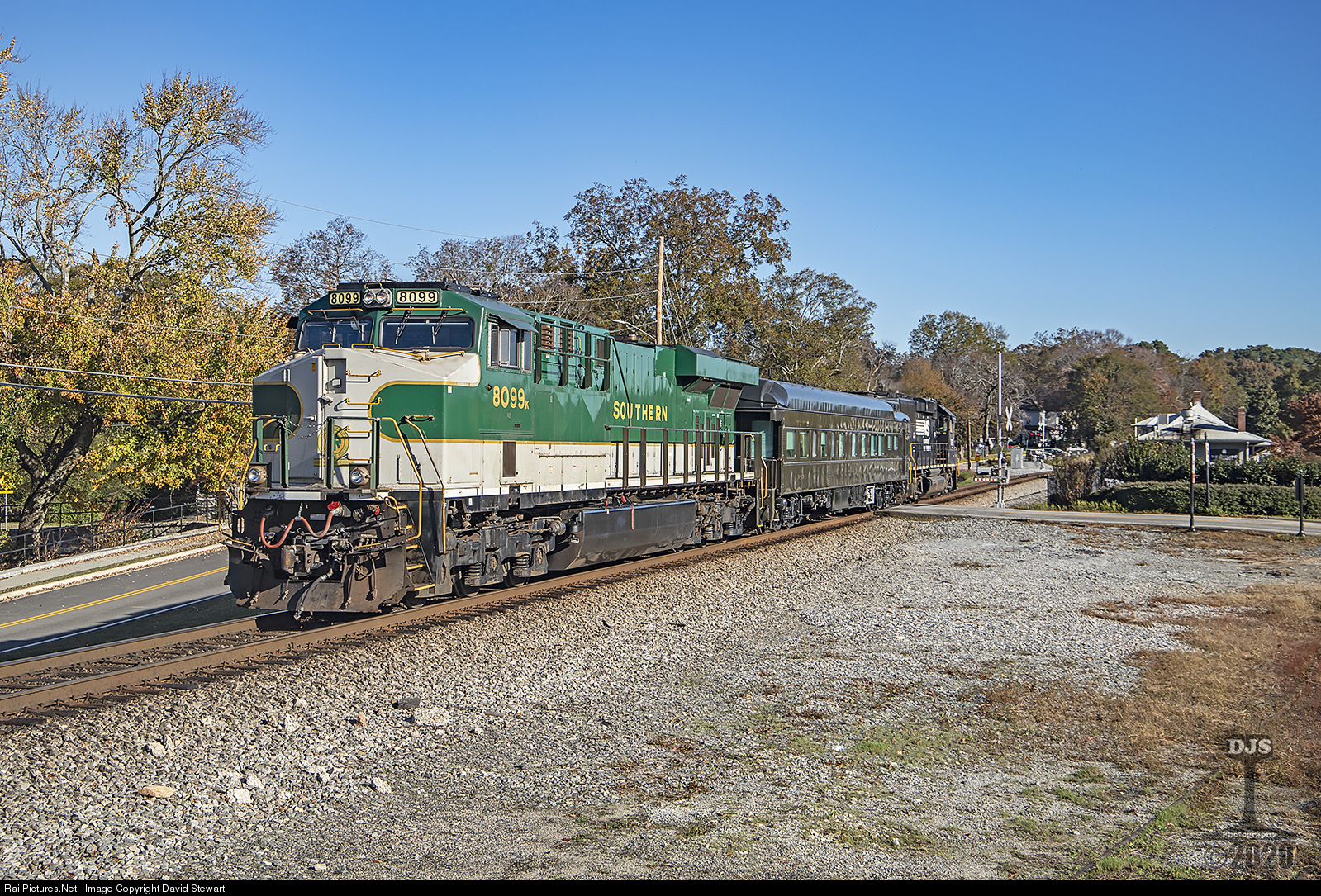 | NS P57 heads north at Norcross, Georgia with the historic 1927 Pullman built, Marco Polo in tow along with the Southern Railway heritage ES44AC. The Marco Polo was donated to the Southeastern Railway Museum by Norfolk Southern later in the morning at Duluth. |