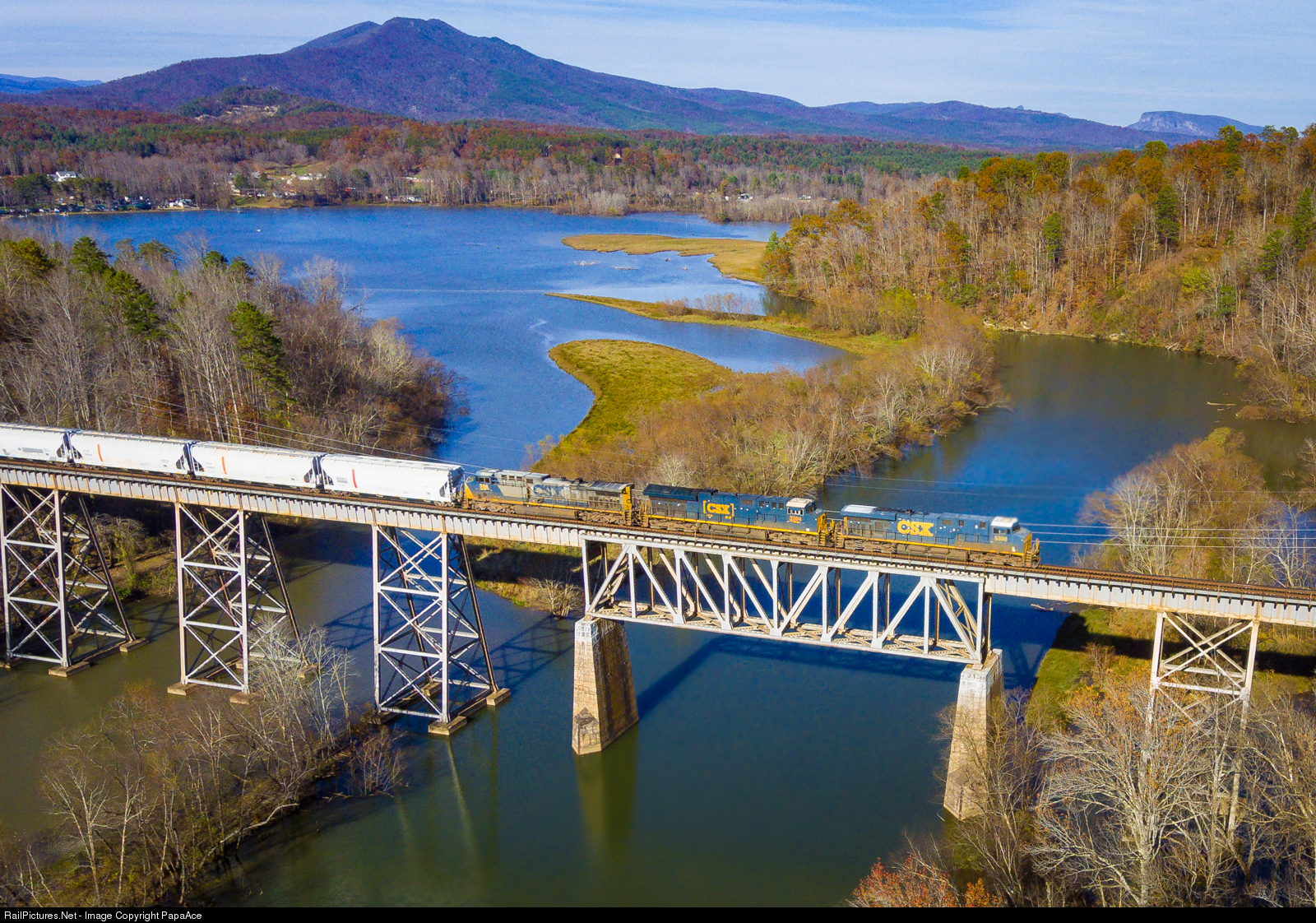 CSX Q693 heads south on The Clinchfield as it seen crossing the Catawba River near Marion, NC.