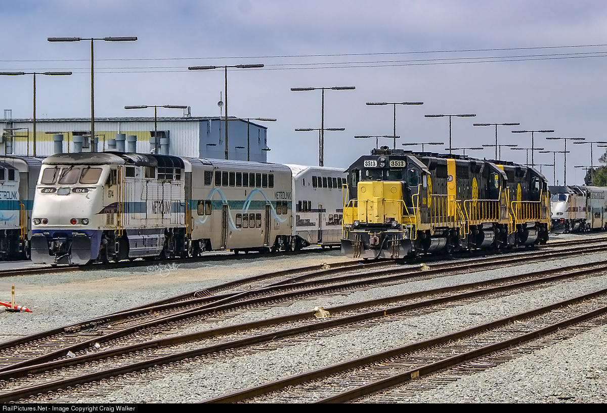 The Pacific Sun Railroad was perhaps southern California’s most difficult railroad to photograph, as its operations were nocturnal and the power tied up in the joint Coaster/Metrolink facility in Stuart Mesa, accessible only by passing through the heavily guarded USMC Camp Pendleton. Three of their engines, leased from Webb Asset Management, were sitting in Stuart Mesa as Amtrak train 572 passed through with private car "Silver Splendor" in the consist, which provided the opportunity to photograph from an open vestibule. WAMX GP35 3513 is the former Palouse River & Coulee City Railroad 799; ex-BLMR 799; ex-Blue Mountain Railroad 799; ex-Union Pacific GP35 799; née-Western Pacific 3022. WAMX 3513 is coupled to WAMX GP40s 4047 and 4048. In late 2020 the Pacific Sun Railroad ceased operations, and their WAMX engines were shipped out, when BNSF took over freight service to their customers. (Oceanside, California – August 17, 2013)