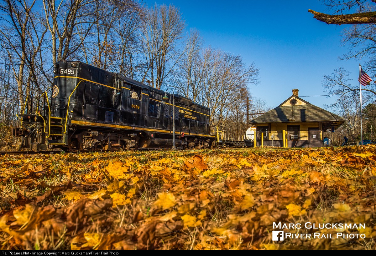 Working In The Colors. West Chester Railroad 6499 (née B&O, EMD GP9) poses in front of the former SEPTA Cheney station on Saturday, November 14, 2020 during a photo special. The building currently serves as the Cheney Post Office.
