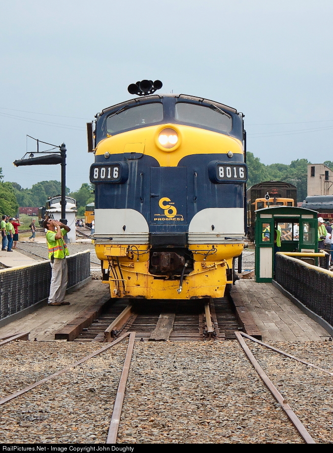 Chesapeake & Ohio 8016 rolls on to the turntable at the North Carolina Transportation Museum to the delight of the many rail fans in attendance. This was part of the Streamliners at Spencer Event.