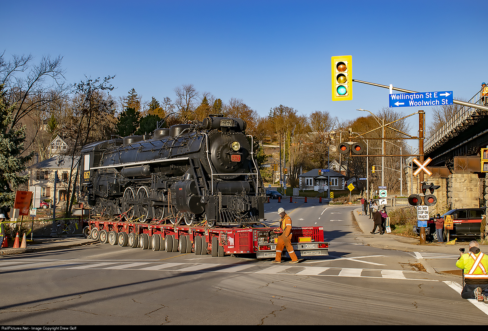 On November 14, 2020, Canadian National 6167,owned by Guelph Museums, moved from it's home by the Guelph Central GO station to John Galt Park, named after the founder of Guelph, John Galt.