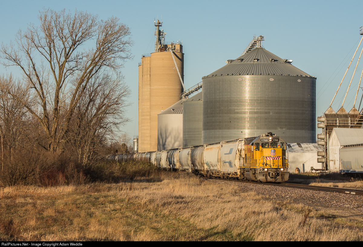 | UPY 700 has just crossed the BNSF Mendota Sub, and is continuing it's journey to Troy Grove, IL. |