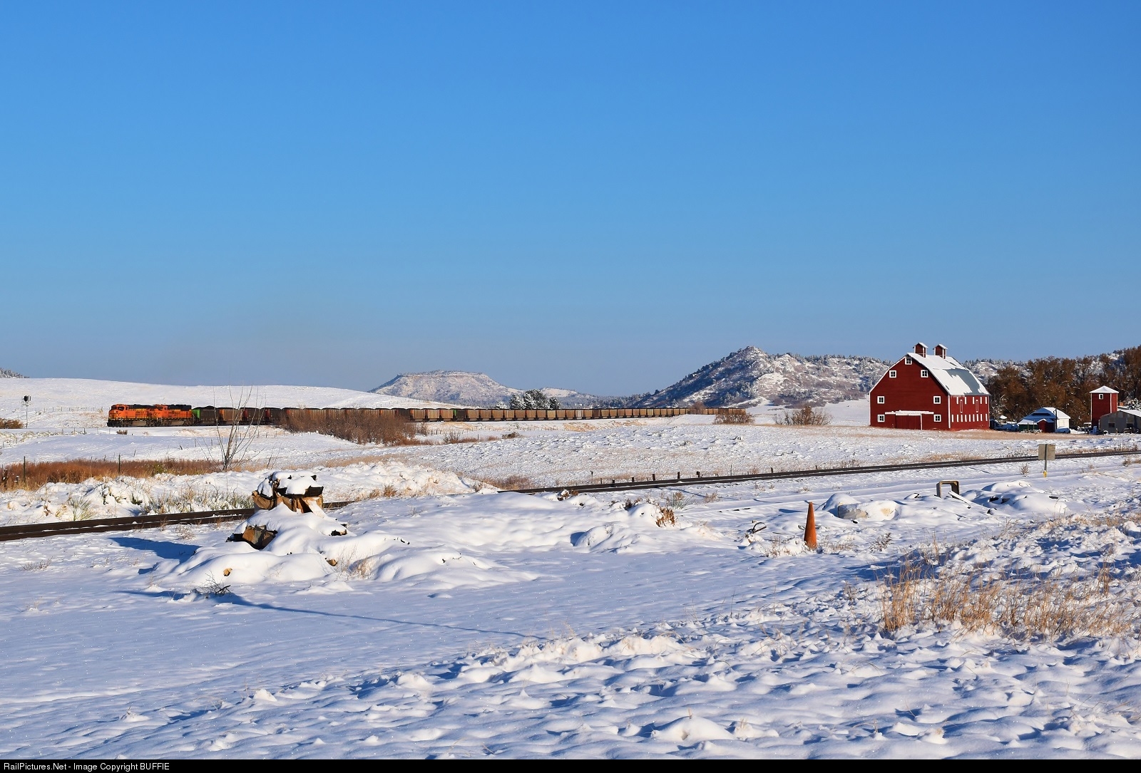 BNSF 5780 (ES44AC) leads a loaded coal through Greenland and past the iconic red barn of the historic Greenland Ranch.