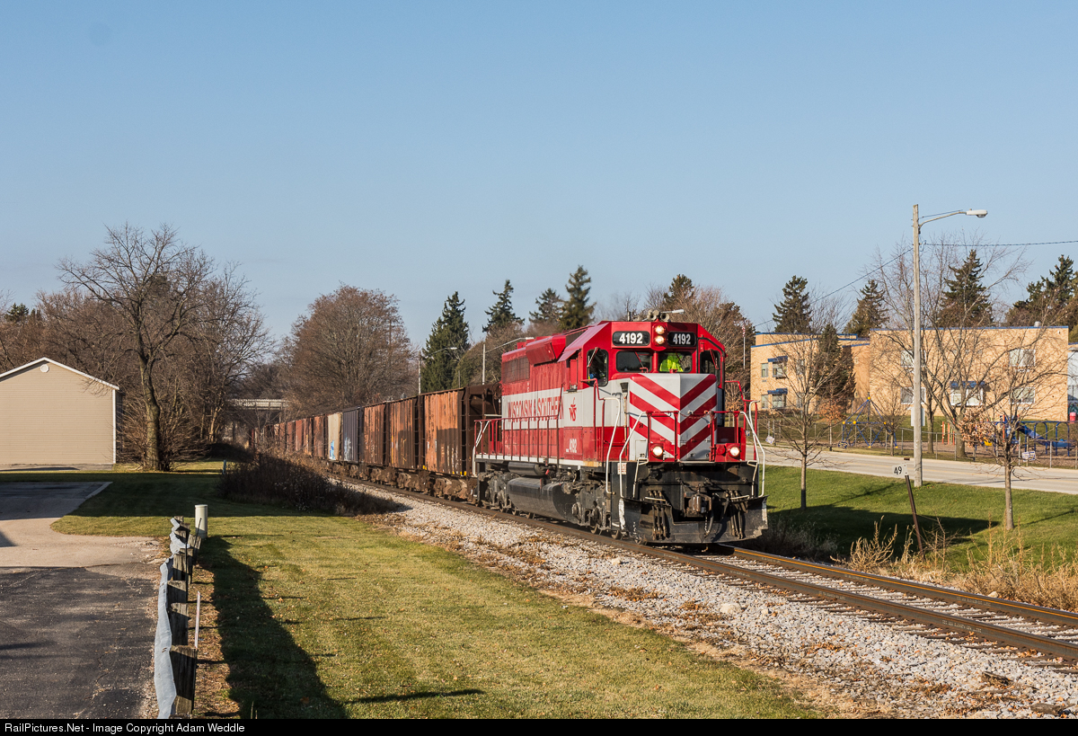 | WAMX 4192 knocks down Milepost 49 on the WSOR Waukesha Sub. In about another 5 miles, the train will begin rendezvous with MOW and begin dumping ballast. |