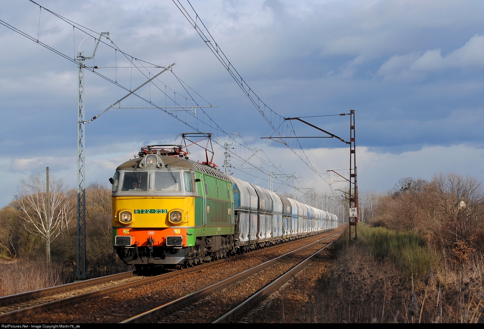 | On a beautiful sunny afternoon, the electric locomotive ET22-233 hauling a freight train from Dąbrowa Górnicza Towarowa to Chorula Cementownia. |