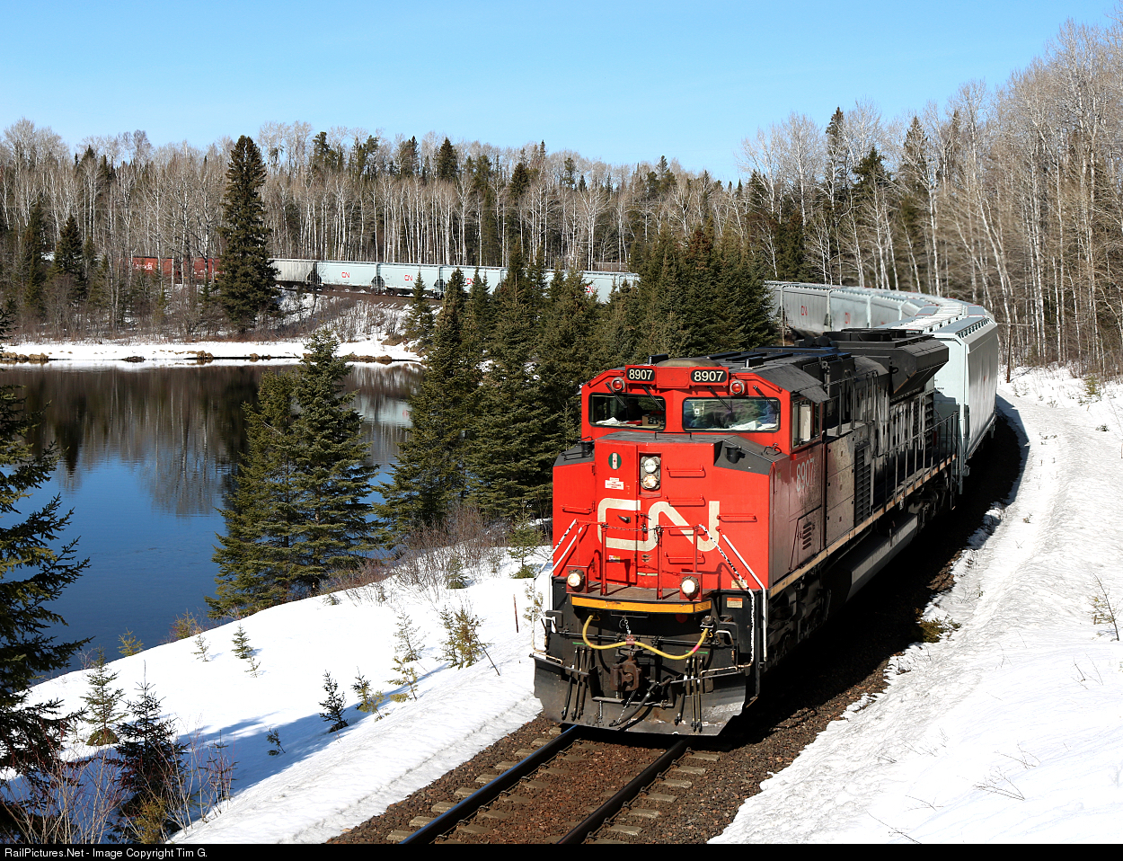 CN 840 twists around the Shebandowan river beginning its descent of Mabella Hill and eventually the port of Thunder Bay. The beauty of the spring grain rush are opportunities such as this to shoot the primarily nocturnal Kashabowie Sub.
