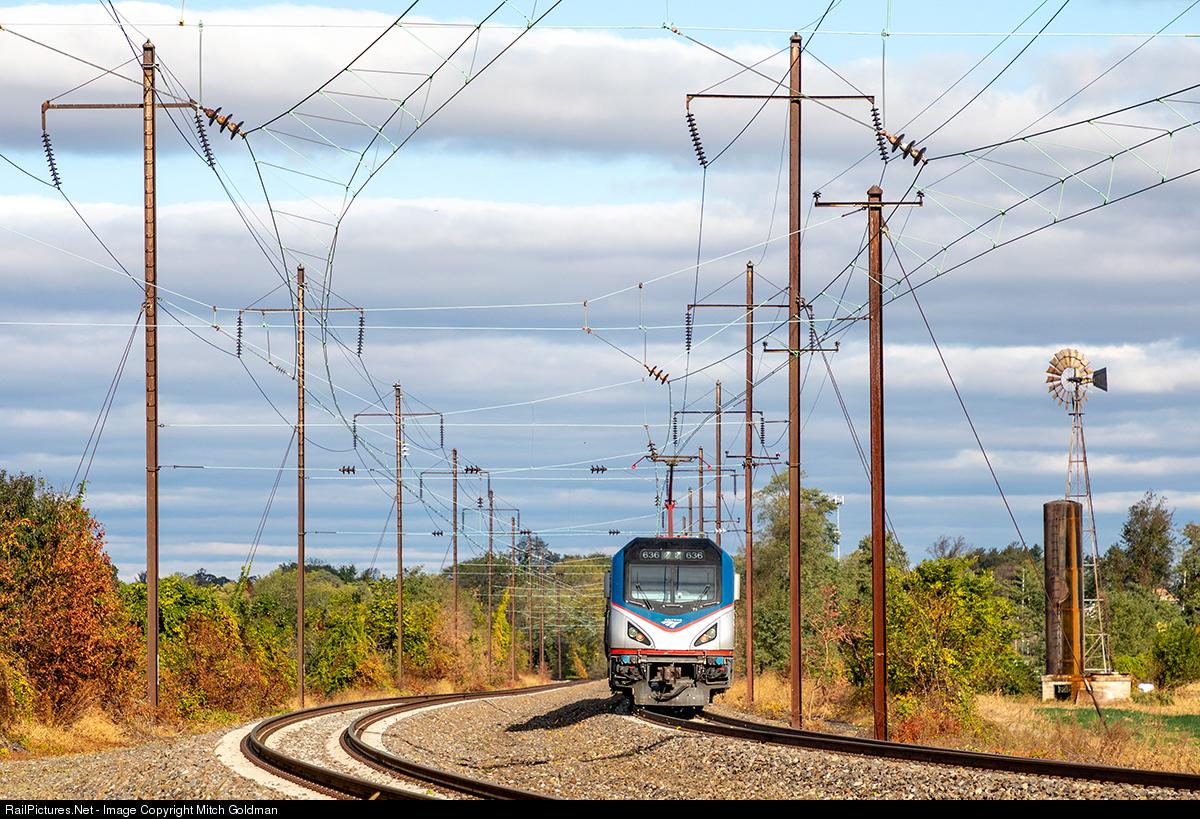 | AMTK No. 636, having rounded the sharp bend through Gap, PA, pushes a westbound Keystone past a farm complete with windmill, and on towards Lancaster. |