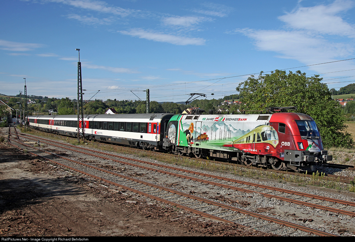 | ÖBB 1116 159 has a publicity paint "150 Jahre Brennerbahn" ("150 years Brennerrailway" from Innsbruck/Austria to Bolzano/Italy). On this side are italian trains, on the other side are austrian ones. |