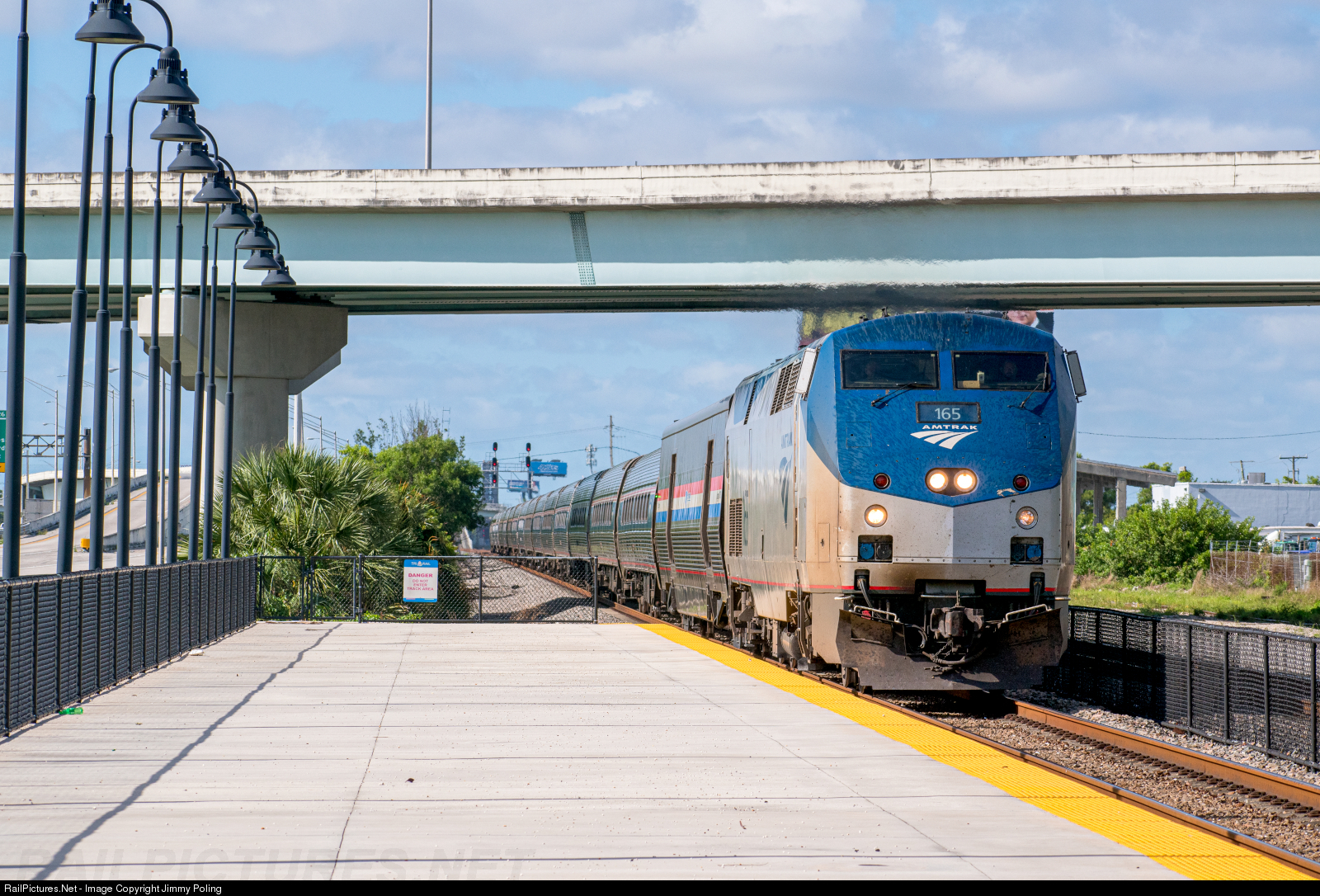 | Northbound equipment move P95029 races through the Fort Lauderdale Amtrak/Tri-Rail station destined for Jacksonville, Florida. Amtrak 165 leads one baggage car and 15 amfleet coaches, some of which almost looked brand new.