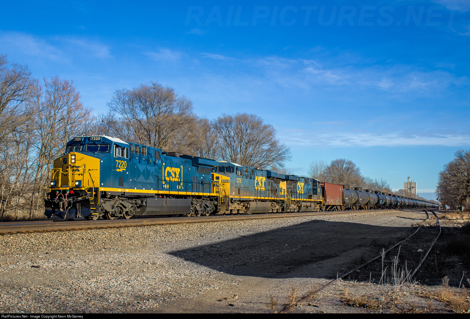 | A trio of CSXT GEs are in command of an empty crude oil train headed west to fill up on North Dakota oil. The leader is a relatively clean rebuild, which shines up good in the low winter sun. |