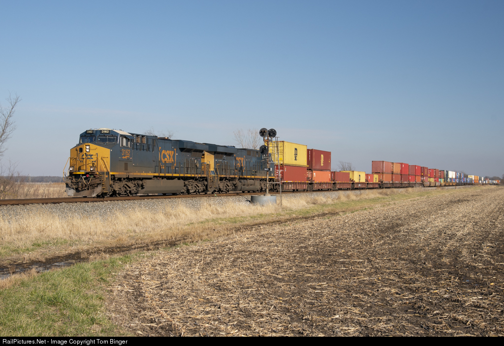 RailPictures.Net Photo: CSXT 3162 CSX Transportation (CSXT) GE ES44AC at St. Elmo, Illinois by Tom Binger