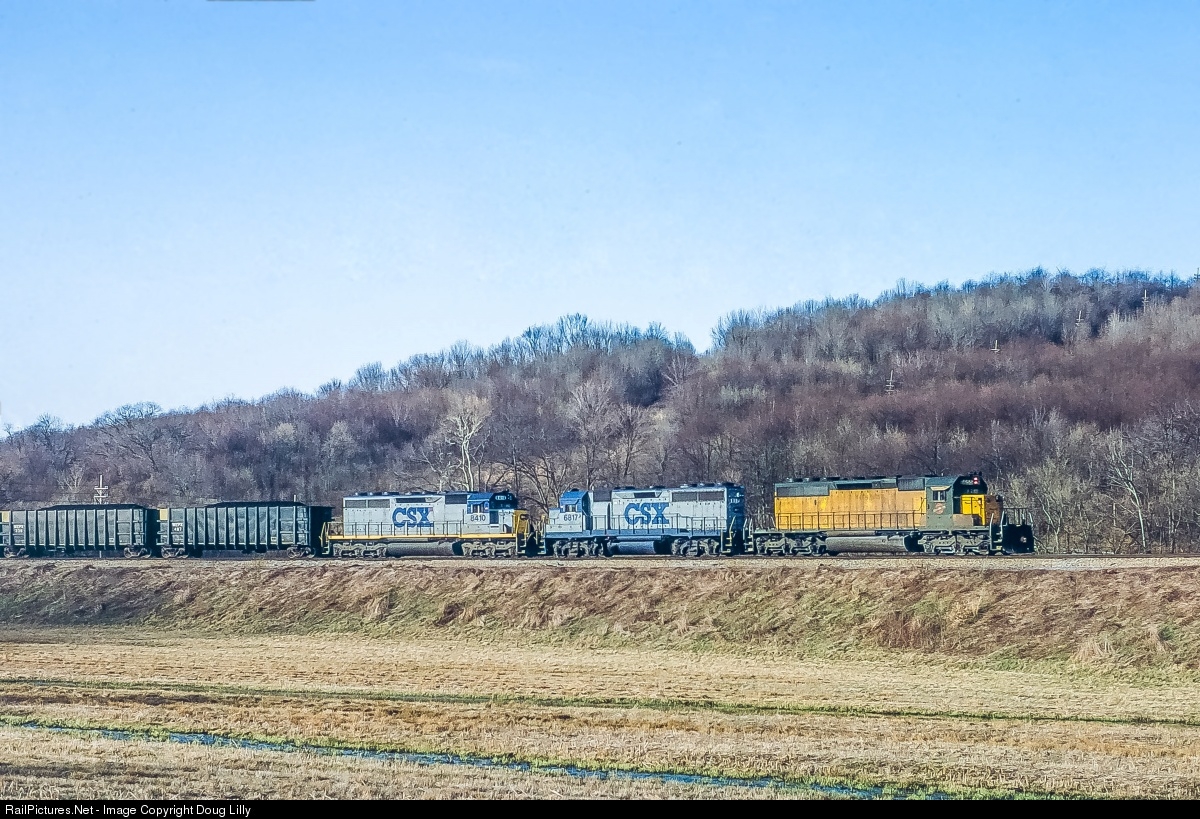 With a full train of coal from Consolidated Coal’s Bailey Mine trailing, three 40-series EMD’s pass through West Waynesburg, Pennsylvania, on the Monongahela Railway. The train is consigned to Wisconsin Electric, and regularly used CSX and Chicago & North Western run-through power.