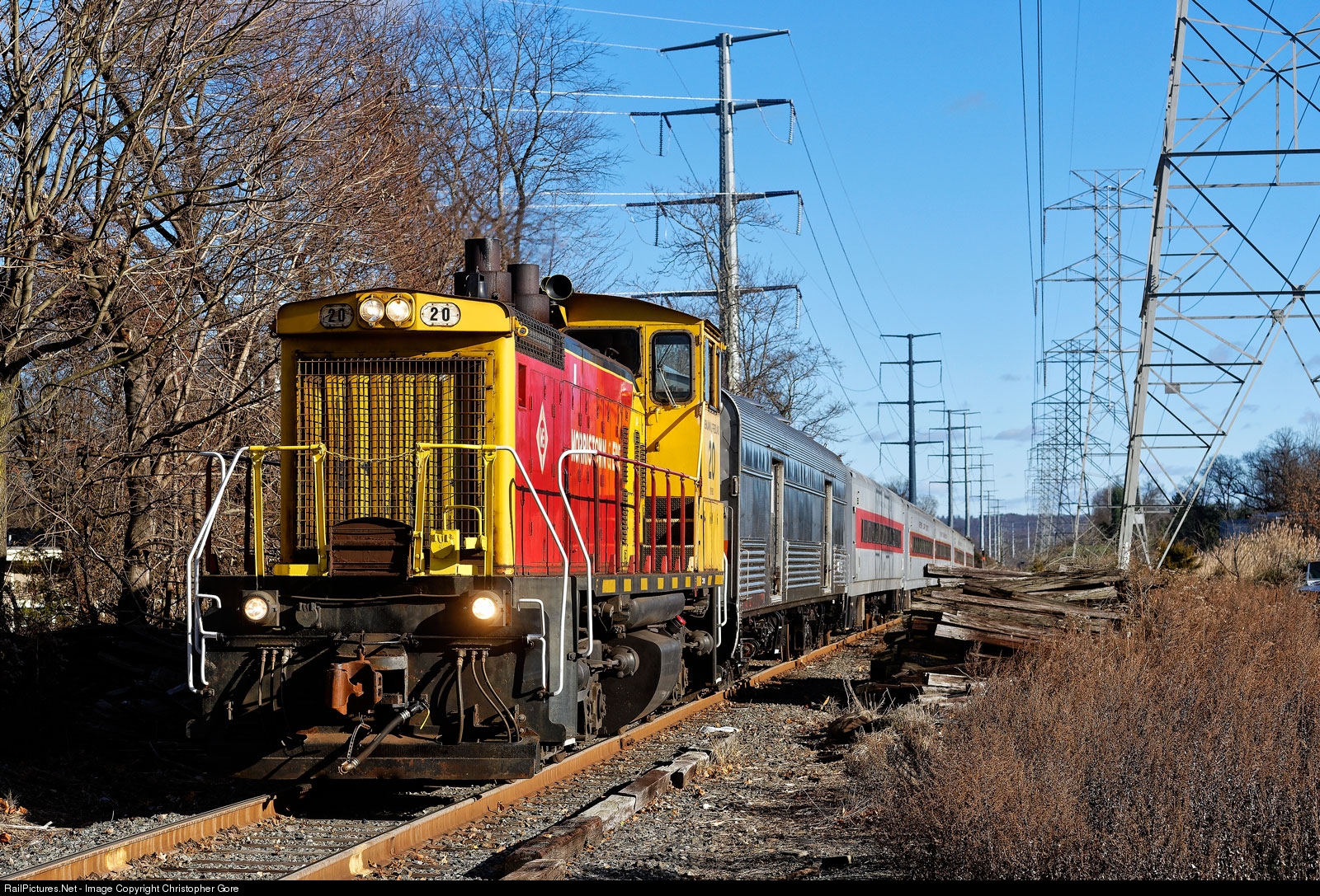 | Morristown & Erie SW1500 #20, heading back to the Whippany Railway Museum, with the Kringle Railway Adventure excursion. |