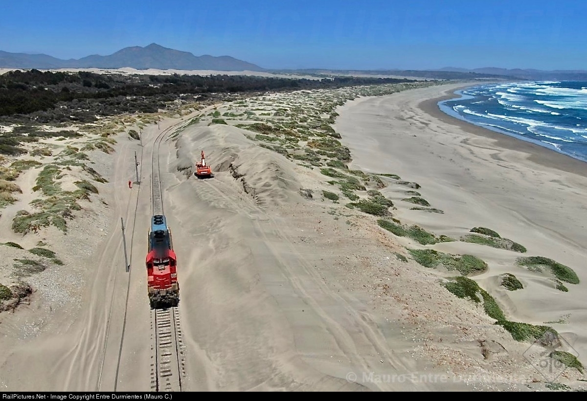 EMD SD40-2, advances lonely by the sand and the beach of Ritoque, in Quintero (Valparaiso Region).