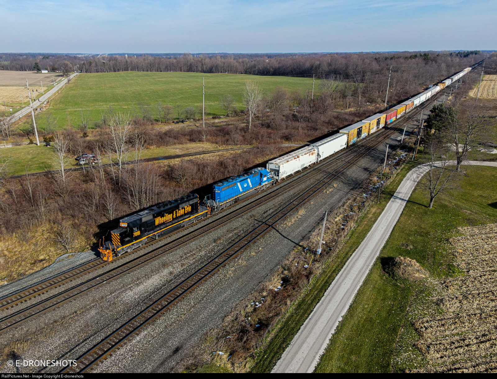 RailPictures.Net Photo: WE 7019 Wheeling & Lake Erie EMD SD40-2 at Greenwich , Ohio by E-droneshots