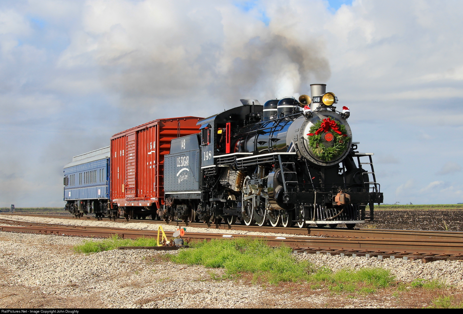 | USSC 148 leads the Toys for Tots - Sugar Express east towards their next stop in Belle Glade, Florida. Santa Claus and United States Marine Corps are on board with a boxcar full of toys. This is the first time the USSC 148 has pulled this special train, and what a beauty she is. |