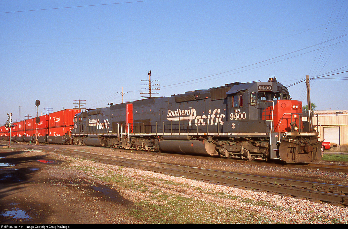 | Two SD45T-2s pull intermodal loads down the BNSF (former CB&Q) main in a switching move. Intermodal and manifest were combined into one train at Galesburg necessitating this move at the destination. This is reminiscent of the days before 1972, when TP&W trains used the CB&Q through Peoria to reach their own Illinois River bridge and yard in East Peoria. |