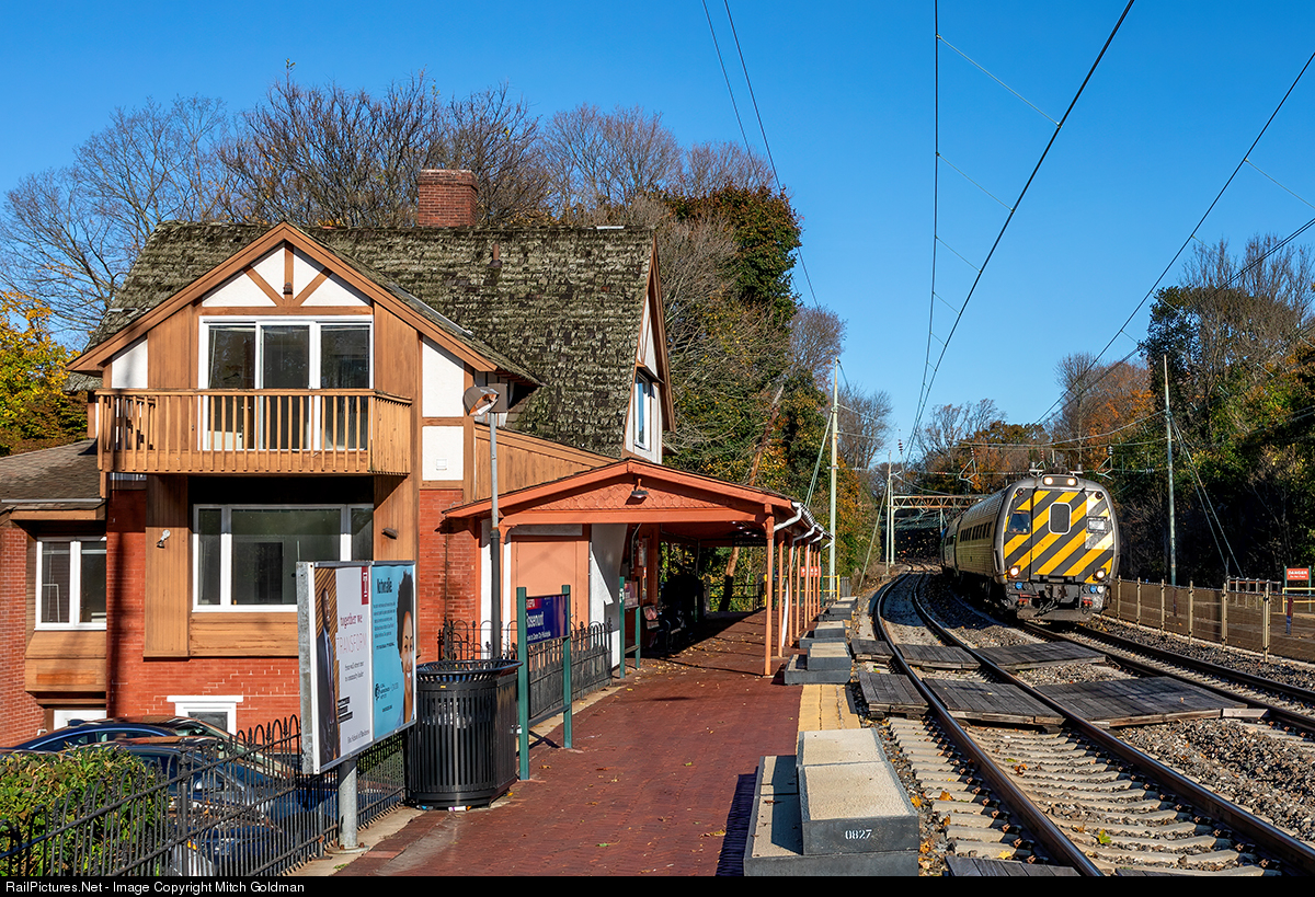 An eastbound Amtrak Keystone leaves a wake of leaves behind it as it snakes the reverse s-curve through Rosement, Pennsylvania. The station seen here to the left was built by the Pennsylvania Railroad in 1892. It replaced an earlier 1863 built station. It was heavily modified in 1983 when a real estate broker's office became co-tenant of the building. SEPTA maintains a small lobby and ticket office on the side facing the tracks. The station serves the SEPTA commuter agency along Amtrak's Keystone line and is located roughly 11 miles west of Center City Philadelphia.