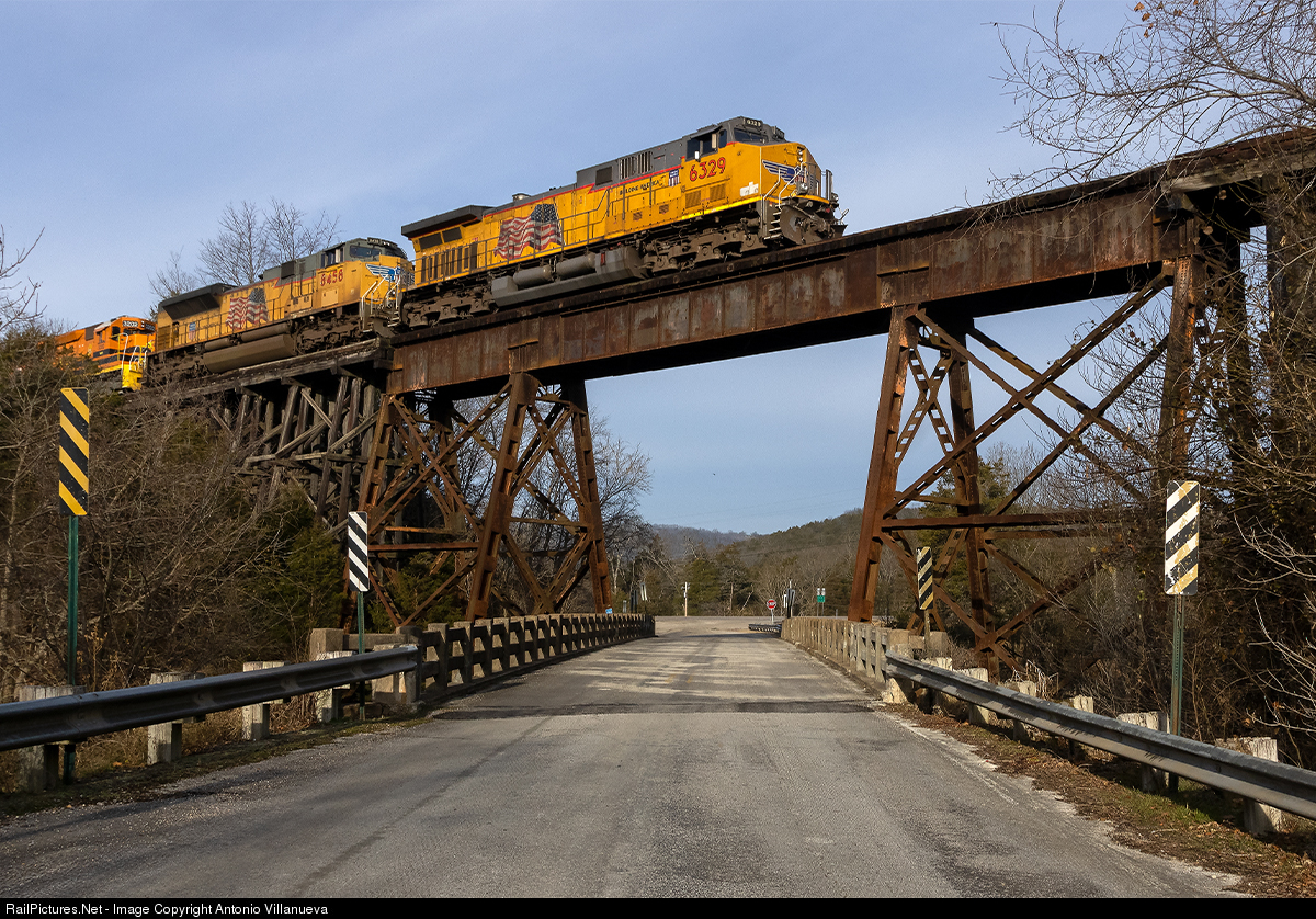 RailPictures.Net Photo: UP 6329 Union Pacific GE AC4400CW at Yellville, Arkansas by Antonio Villanueva