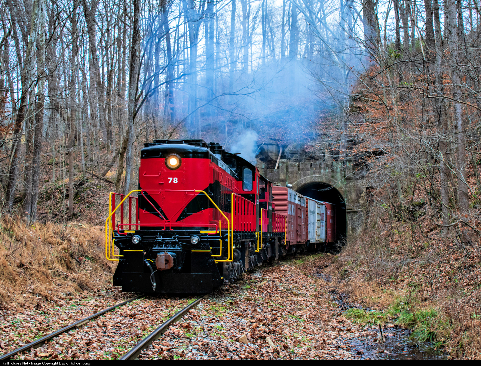 On December 13, 2020, Indiana's Dubois County Railroad and their affiliated passenger arm, the French Lick Scenic Railway, operated a photo freight out of French Lick to Dubois featuring DCRR Alco S2 No. 78 in a fresh dress of the old Algers, Winslow & Western colors but lettered for the DCRR, paired with the FLSR's AW&W Alco RS-1 No. 4, making for a nicely matched set of power.