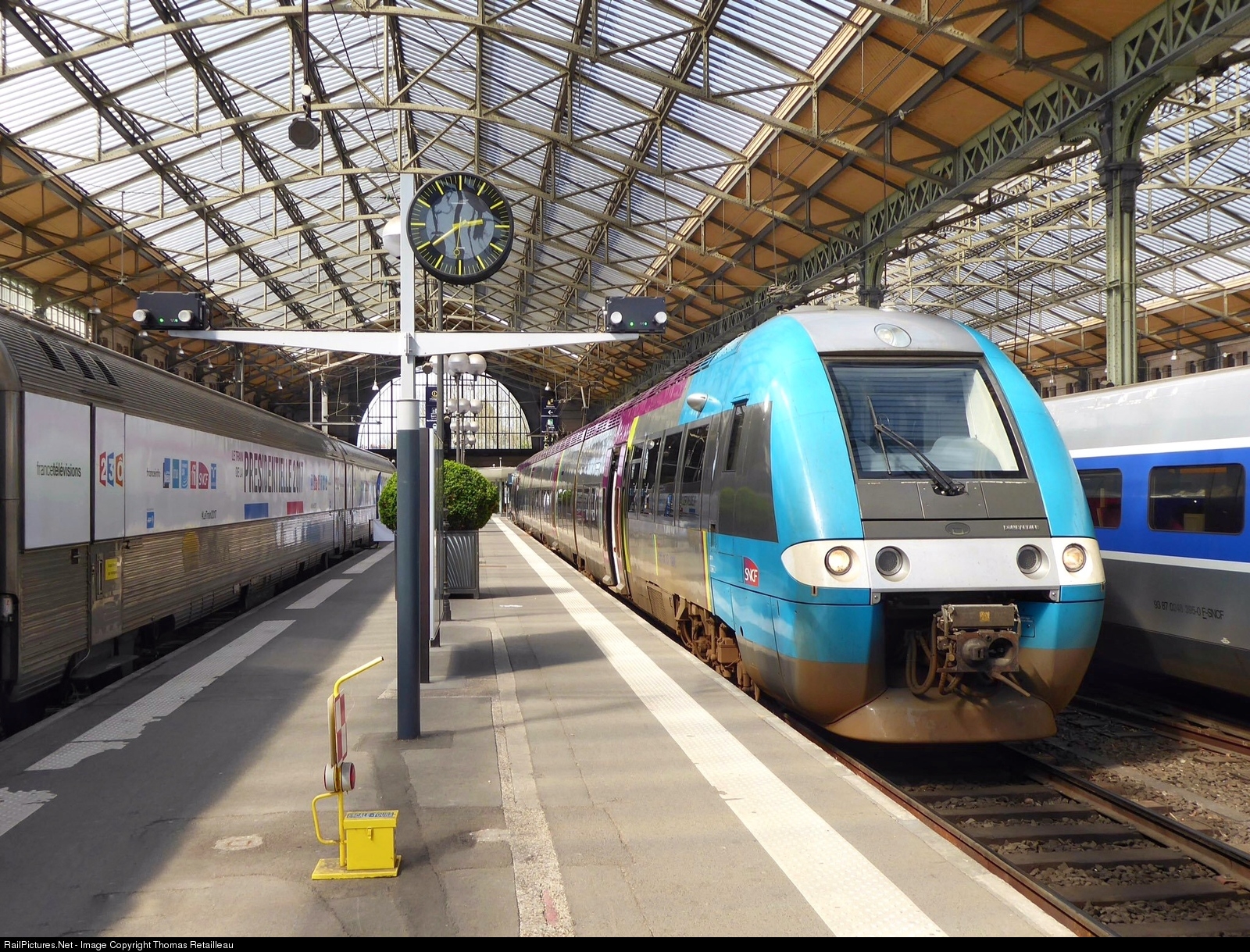 Le 26 mars 2017, sous la belle verrière de la gare de Tours, la Z27775 est prête à assurer le 860115 pour Nantes. A son coté se trouve le Train Expo SNCF qui avait alors pour thème les élections présidentielles Françaises, à l'occasion de celle de 2017.