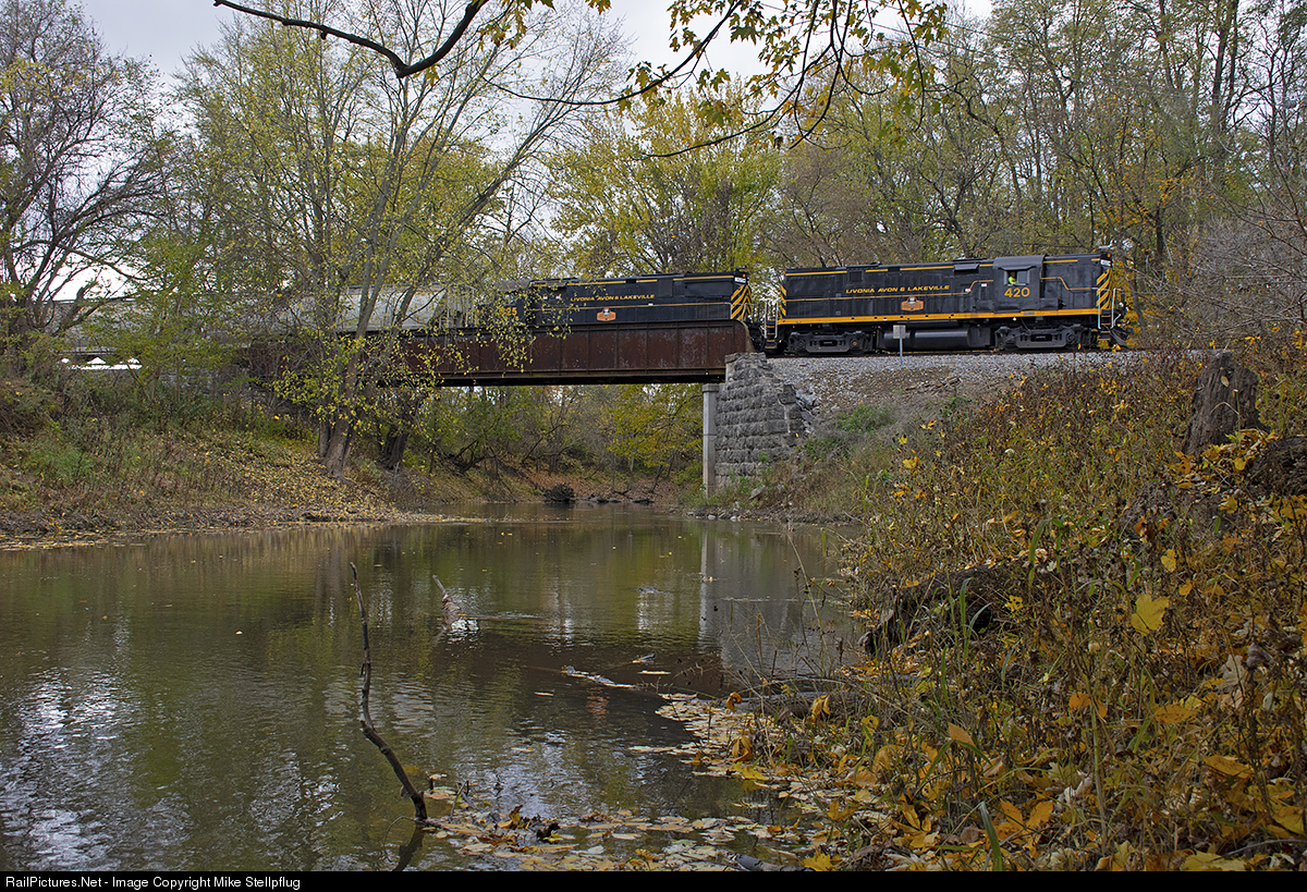 LA&L 420 & 425 have 19 cars Northbound over Honeoye Creek in Rush, NY on October 30, 2020. Fall colors never really popped here for some reason, but there are decent blankets of orange & yellow leaves on the ground in a few spots.