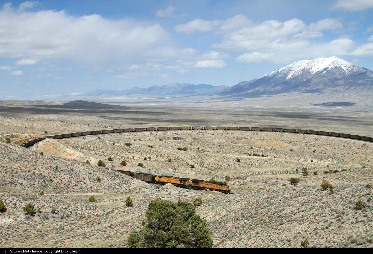 Since I can’t get out and chase trains much in my new home of Rochester, MN right now (Covid-19 you know!), I have been spending a lot of time combing my files of past railfan trips. And guess what? I’m finding quite a few good shots that I have overlooked in the past for RailPictures posting, such as this westbound Valmy coal train fully strung out around Arnold's Loop on the east slope of the Toano Range in eastern Nevada. The Valmy plant is west of Battle Mountain, Nevada. It's Unit #1 is scheduled to be retired by the end of 2021 and the entire plant by 2025. The loss of Valmy’s output will be replaced by solar generated power, or so they say.