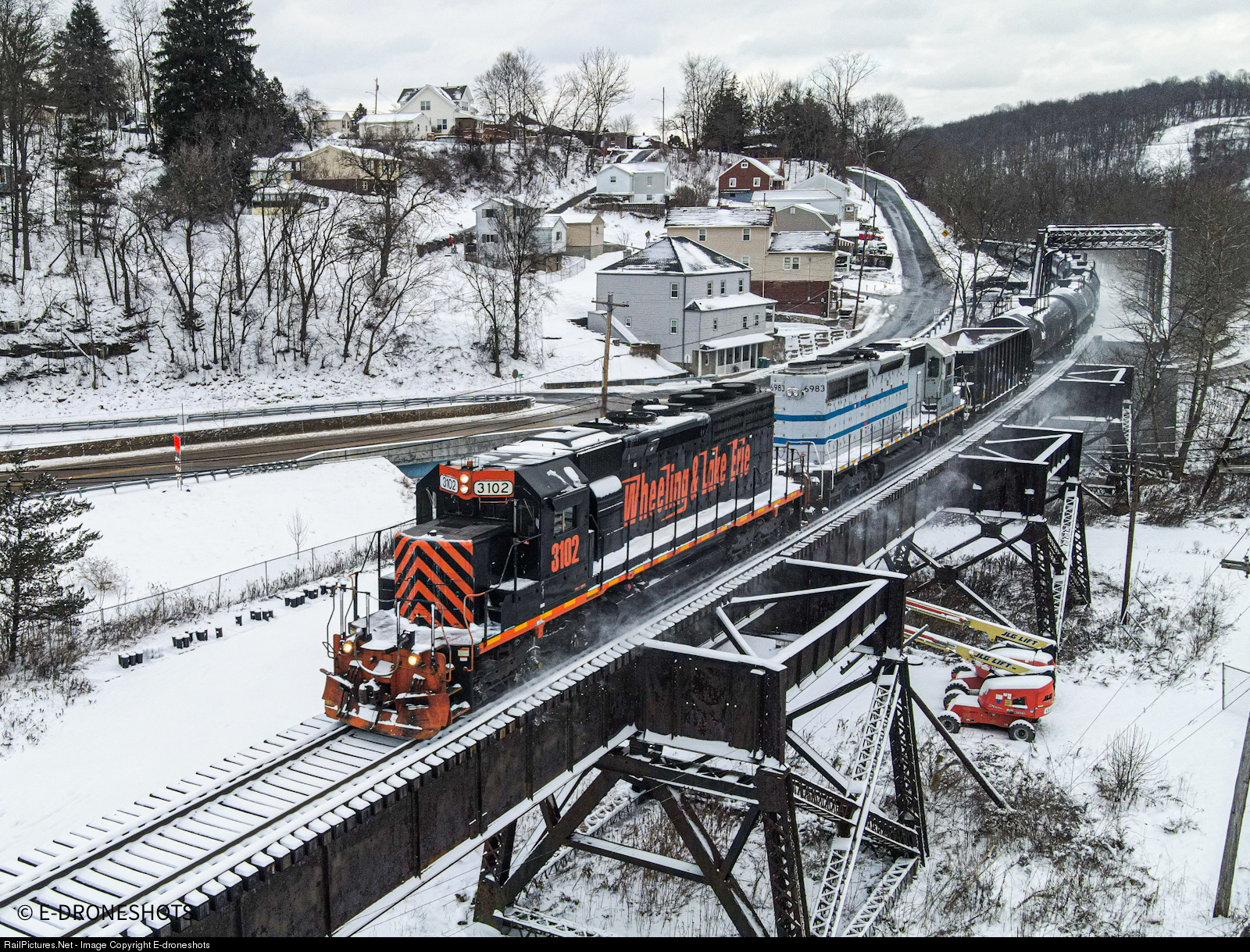 RailPictures.Net Photo: W&LE 3102 Wheeling & Lake Erie EMD SD40-3 at Morgan , Pennsylvania by E-droneshots