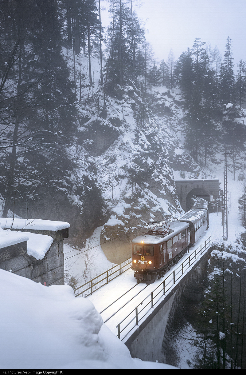 1099 007 turns out of Erlaufklausetunnel as the driver pulls notch by notch on the first major grade heading back to St. Pölten. The name for the train 'Ötscherbär' was found by ÖBB back in 2007 when three engines, eleven passenger coaches and two bike-transport cars were painted brown - as 'Bär' means Bear in German. An additional open car was put into service in recent years. It runs on weekends as charter for tourists.