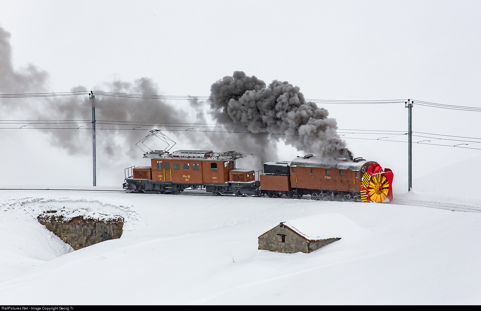 RailPictures.Net Photo: 9213, 182 RhB - Rhätische Bahn Xrot d, Ge 4/4 at Ospizio Bernina, Switzerland by Georg Trüb