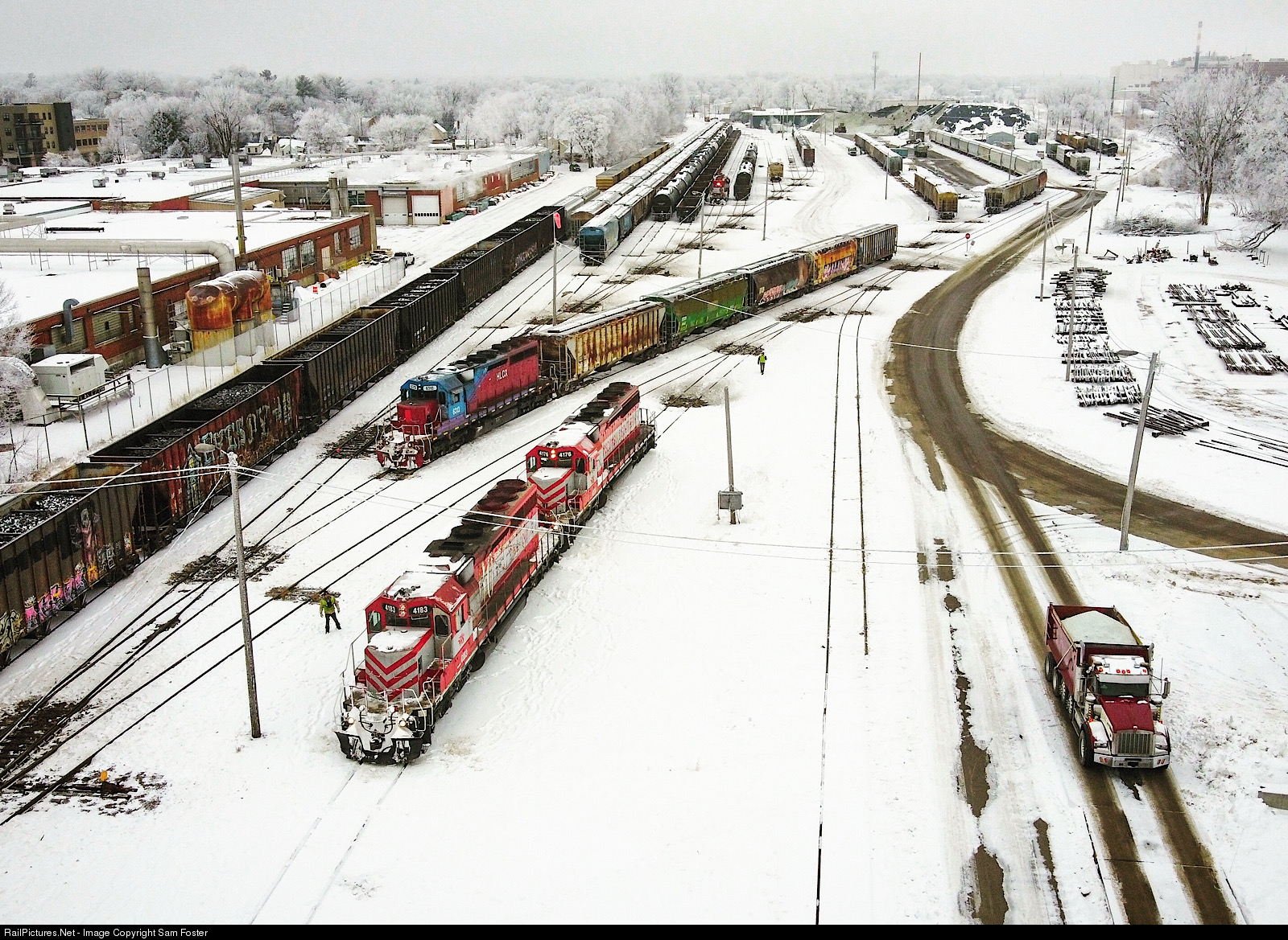 HLCX 6313, an SD40-2 on lease to the Wisconsin & Southern, sits as two WSOR jobs switch in Madison Yard on a cold January morning.