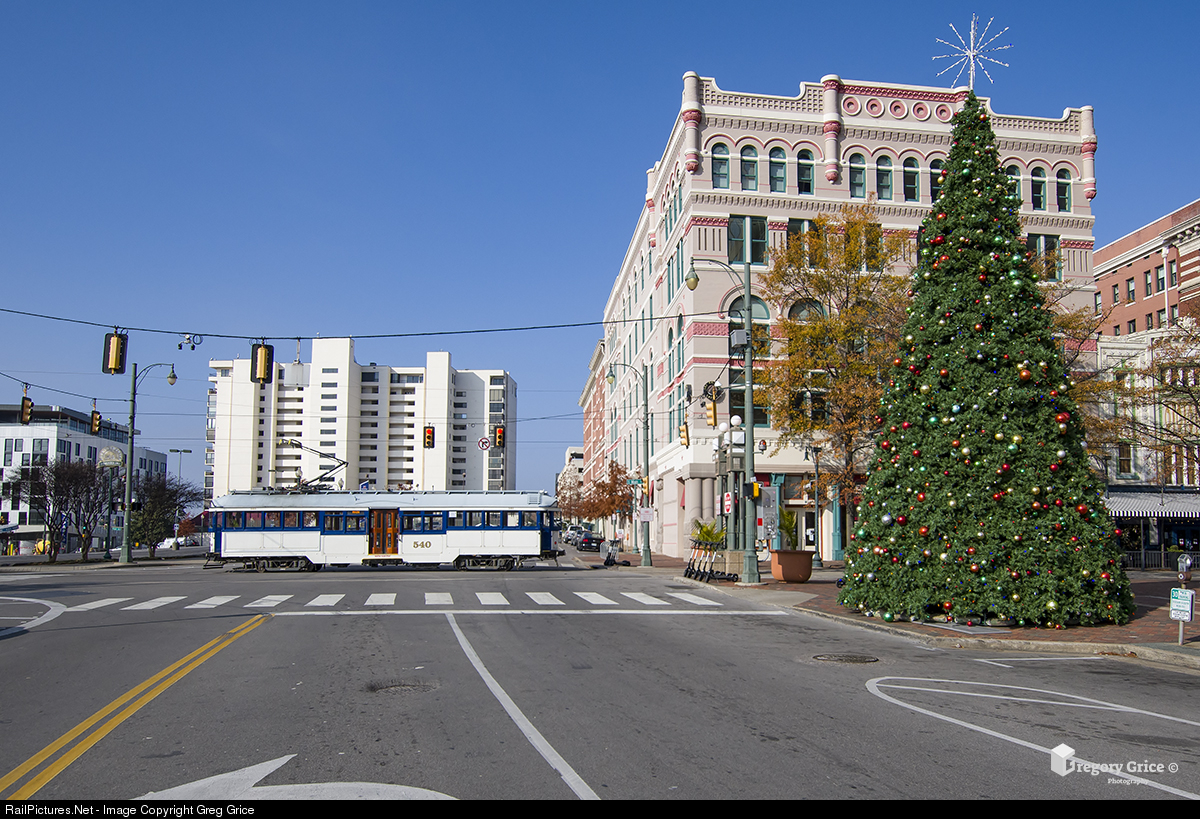 "Trolley by the Downtown Tree"