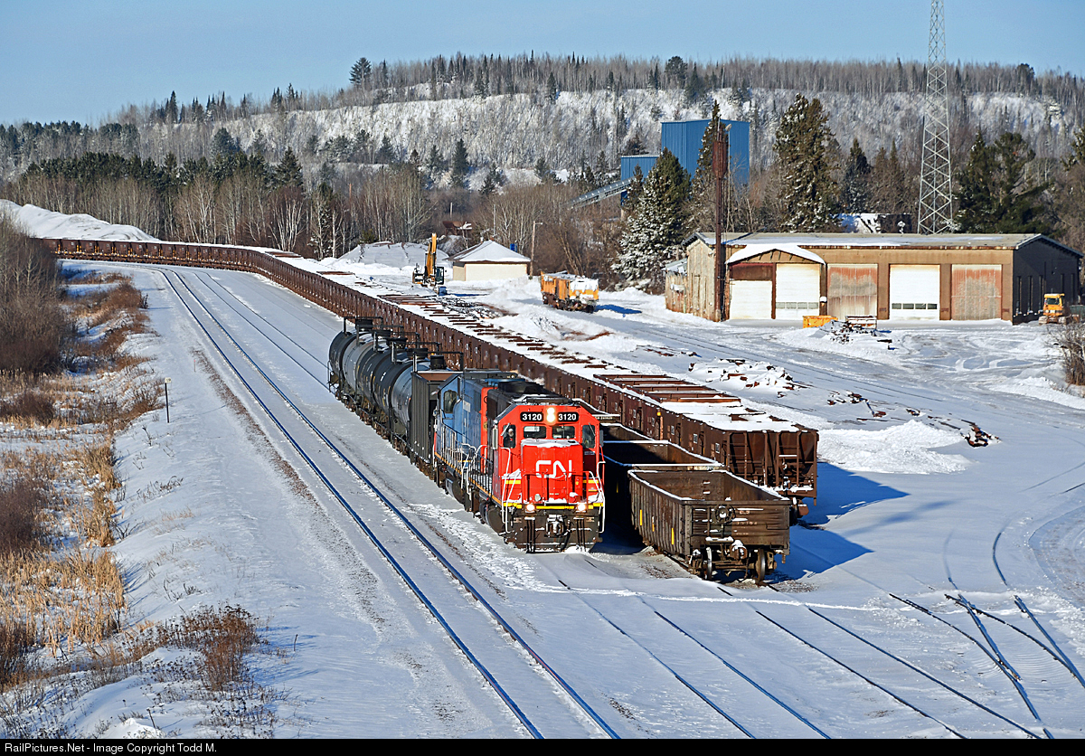 | No rest for the weary on this Christmas morning ( note the engineers Santa hat ) as the Keenan switch job is sitting on the siding at Biwabik waiting for an empty pellet train coming up from Two Harbors to clear before they can continue on the serve the Dyno Nobel plant off the main. |