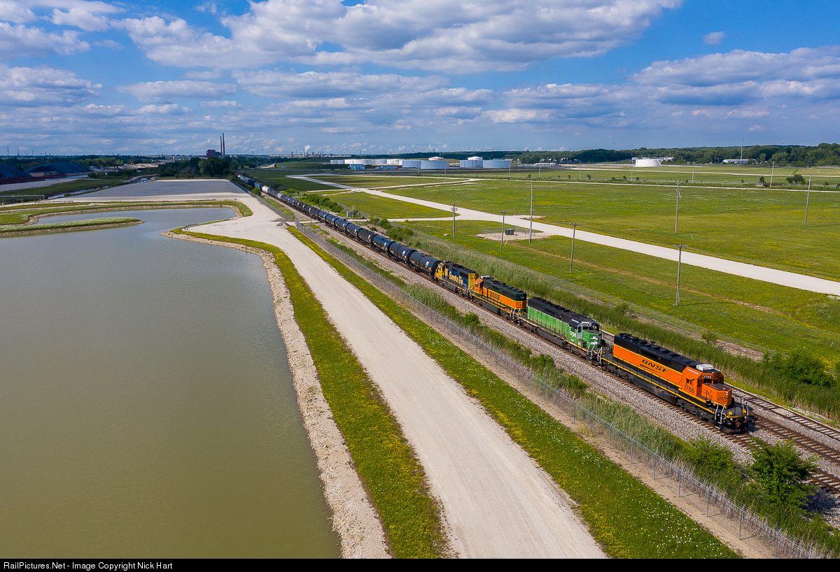 On a sunny afternoon in Lockport, the 4 day a week L CHI105 hustles west with a "skittles" lash-up. Leading the way is an H4 SD40-2, followed by a Cascade green SD40-2, a Heritage 1 GP50 and a Bluebonnet GP50. One of each scheme! This train runs from Hodgkins to Galesburg and is the go to train for cool power on the Chillicothe Sub, along with its counterparts.