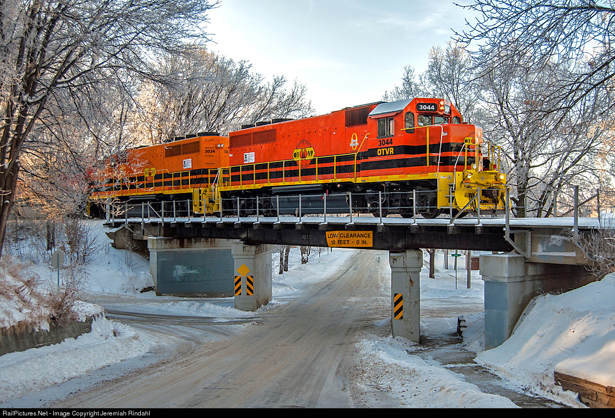 Just underway out of Fergus, the OTV local rolls above Vine St, on its way to interchange with the BNSF in Dilworth.