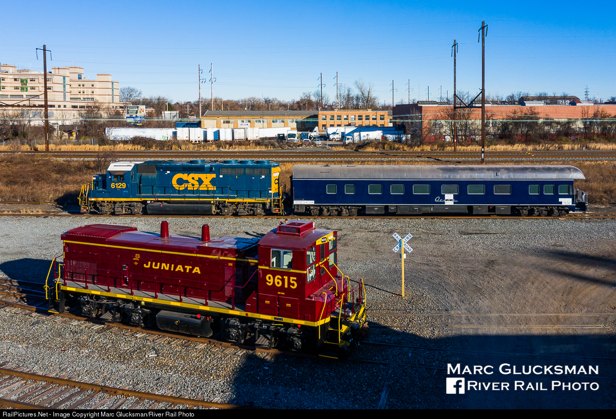 | Norfolk and Western Business Car 300 (RPCX 300) departed its temporary home in Philadelphia, PA on the morning of Saturday, January 9, 2021. CSX GP40-2 6129 (née-BO 4230) does the honors for Conrail Shared Assets while JCTX 9615 (MP15AC) stands by on the side. |