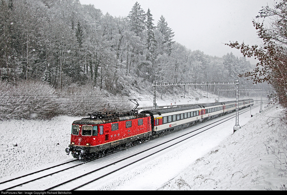 | Locomotives Re 420 are pulling all IC4 trains between Zurich and Singen in Germany. Re 420 303 heads IC 187 (Stuttgart-) Singen - Zurich. |