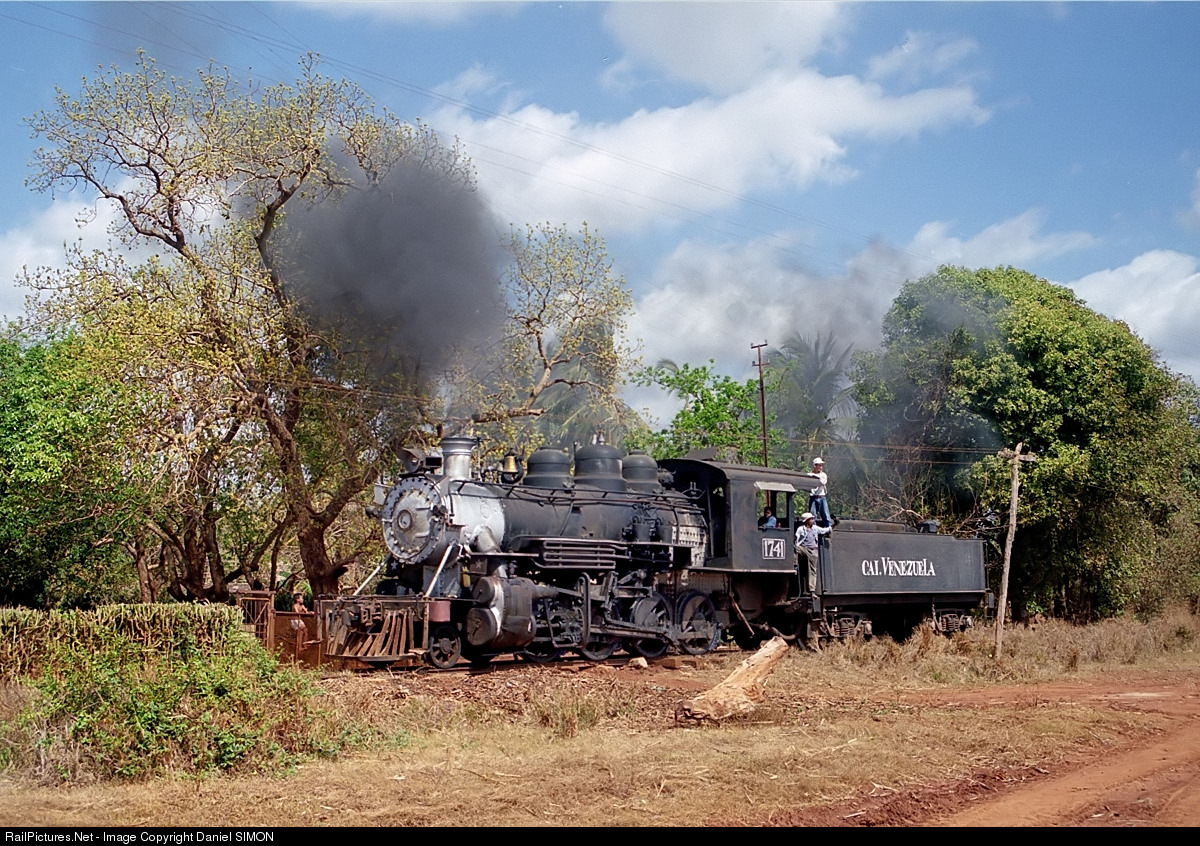 | Minaz #1741 from the Venezuela sugar mill is shunting at a loading point (acopio) somewhere along the line. The consolidation has been built by Baldwin in 1920. |