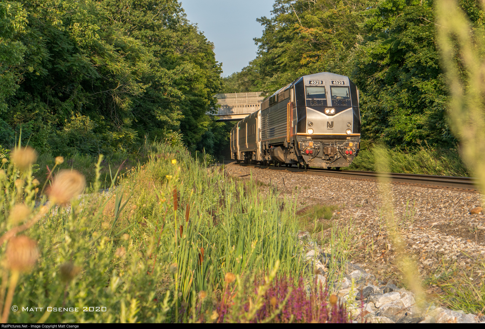| Golden Hour. PL42AC 4029 leads a westbound Montclair-Boonton Line train as it approaches Netcong Station. Interestingly this train terminated at Netcong, reversing out shortly after arriving and discharging passengers.