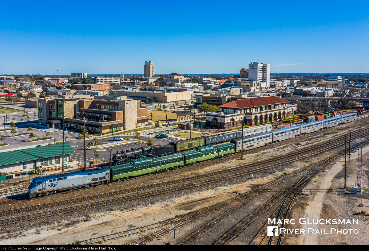 Choose Temple! Both Webb Rail's former Northern Pacific Railway Budd built Pullman dome/sleeper 313 (WEBX 801044) former Northern Pacific Railway Budd built dome/coach 549 (WEBX 801045) were behind the locomotive, in the front of the consist on Amtrak 22 (Texas Eagle) on Sunday, January 3, 2021 as they made the station stop in Temple, Texas. The station is a 1911 Atchison, Topeka, and Santa Fe depot, purchased by the city in 1995 and restored. In 2000, it became home to the Temple Railroad and Heritage Museum, with its extensive collection of rolling stock and artifacts on display.