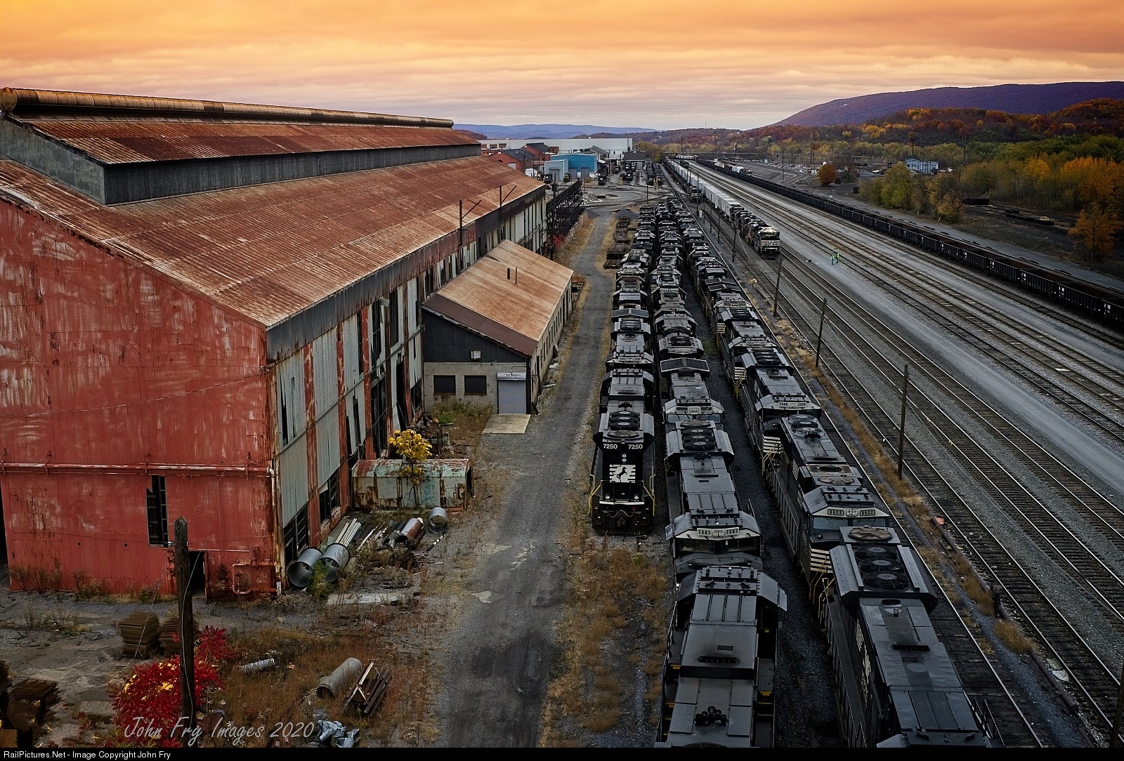 An intermodal train slows for a crew change at Altoona in preparation for its climb up to Horseshoe curve.