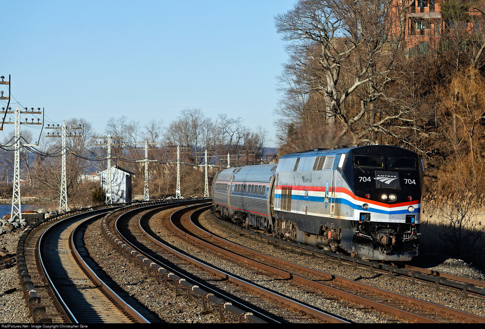 RailPictures.Net Photo: AMTK 704 Amtrak GE P32AC-DM at Scarborough, New York by Christopher Gore