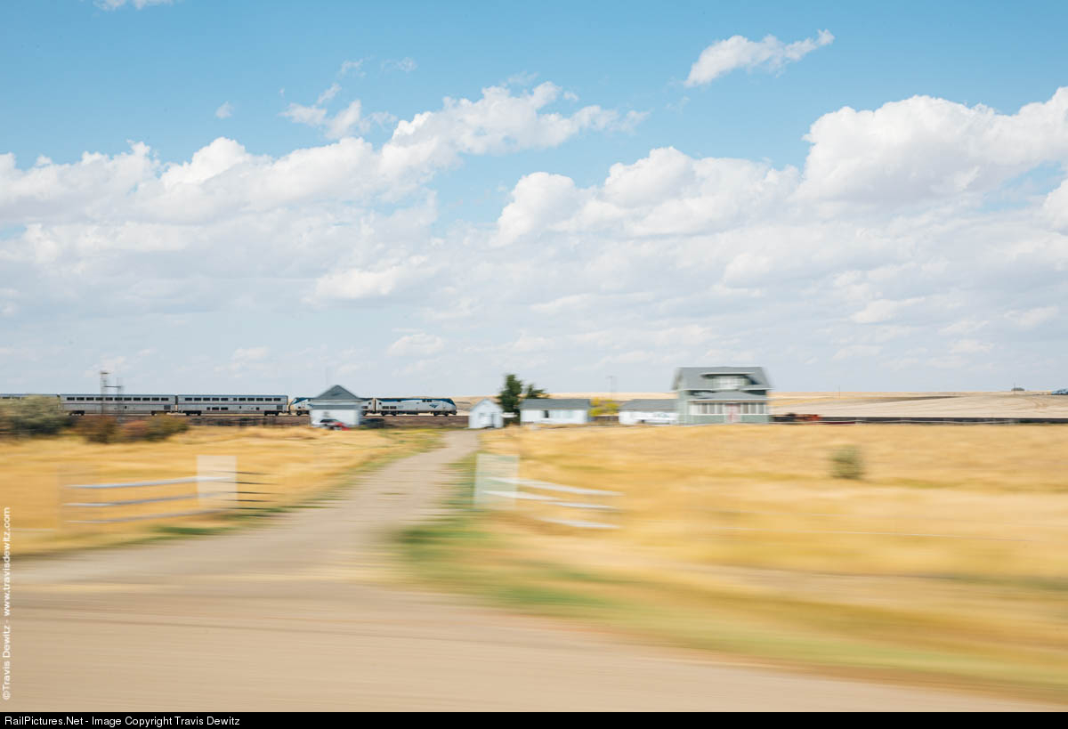 The Amtrak Empire Builder (train 8) speeds across the plains of Montana east towards Havre paralleling Highway 2 most of the way. Amtrak train 7 will arrive at Havre at the same time and will get clearance to pull into the station first, after a quick fuel fill at the fuel racks. The two Builders will meet just west of the depot with train 8 pulling into the depot soon after.