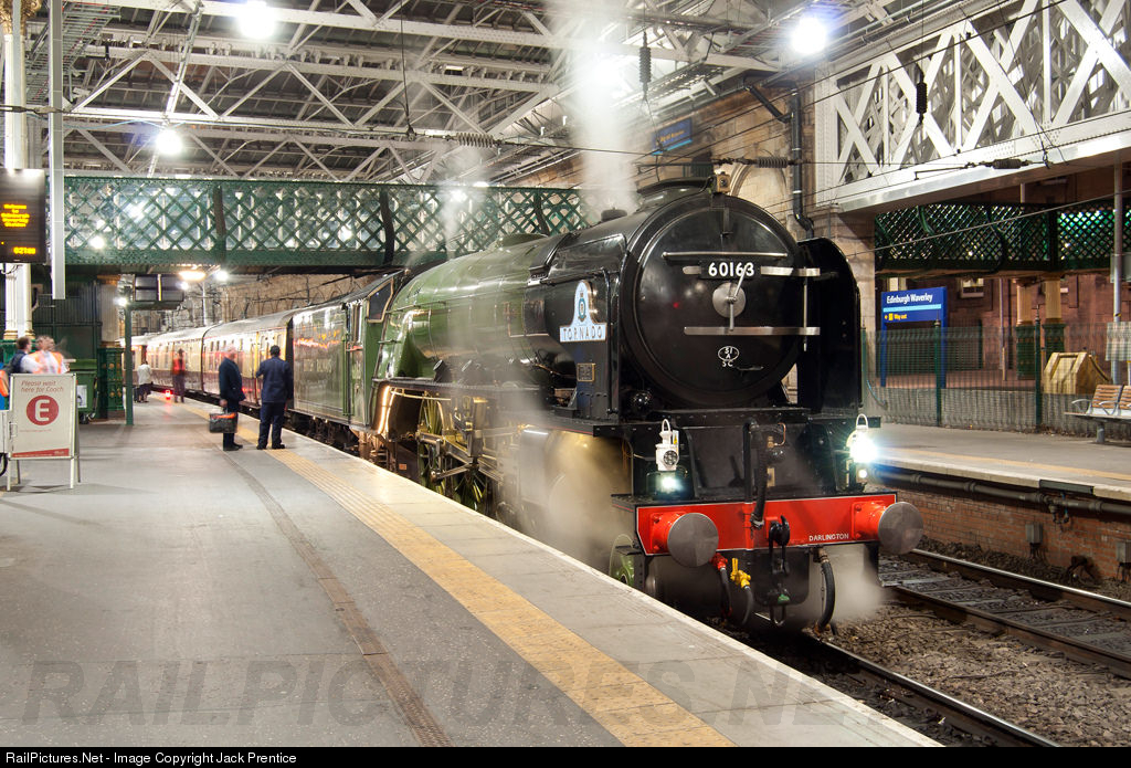 | Just after midnight, A1 61063 Tornado stood in Edinburgh Waverley having worked 1Z76 Edinburgh Waverley - Edinburgh Waverley via Shotts, Alloa and Forth rail bridge |