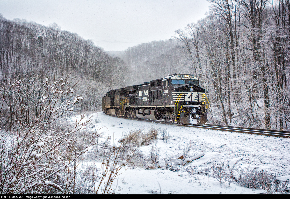 Snow begins to fall outside of Ada, WV as NS #4304 and its empty coal train make the final push into Bluefield, WV on January 16, 2021. The Norfolk & Western Historical Society has quite a collection of vintage slides and negatives searchable on their online archives which depict, in some instances, Class Y locomotives conquering this section of trackage on a daily basis during the 1940s and 1950s.