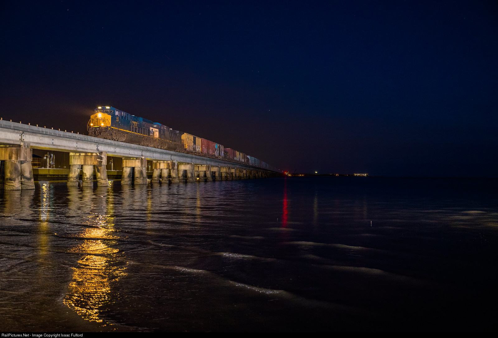 | CSX Q601 is southbound on the New Orleans and Mobile subdivision just after dark on a cold winter night in Bay Saint Louis, MS. Double Exposure to set the scene just like it was when 601 came across... Flashes being neck deep in the water was worth it after this shot turned out like I envisioned.... I couldn't feel my feet for two hours afterwards, but it was worth it for the stunning results you see here! Thanks for looking and enjoy! |